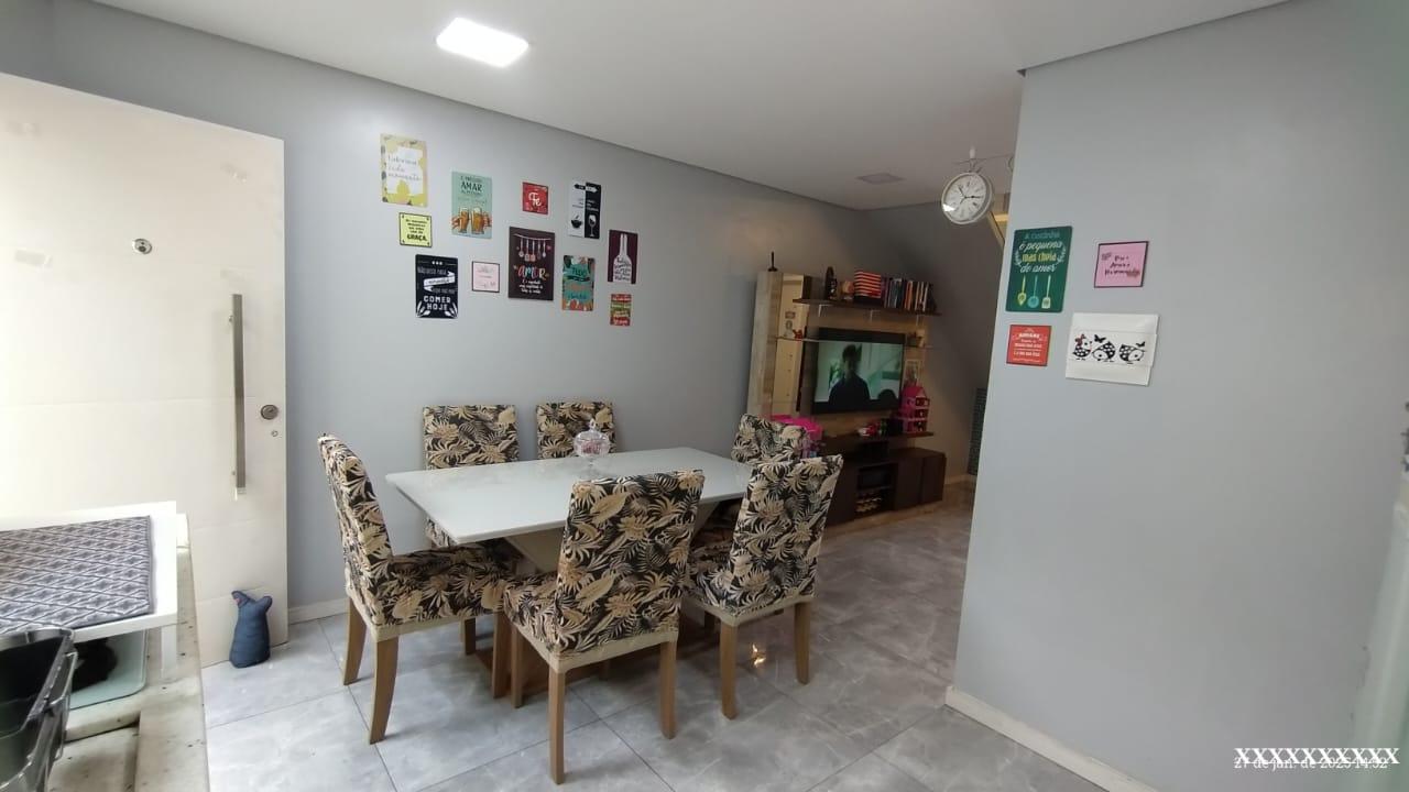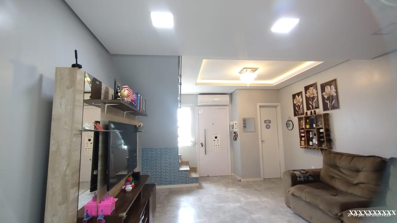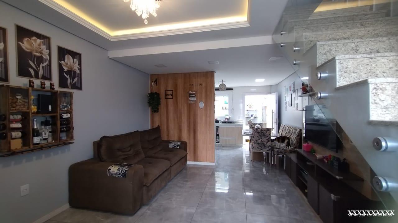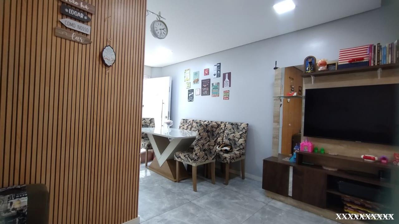 Sobrado geminado estilo duplex. Possui 02 dormitórios, sala de estar e jantar, cozinha, banheiro social, área de serviço, lavabo, vaga para carro e área fechada nos fundos com churrasqueira.